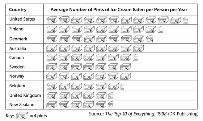 | 8. In which country do people eat an average of about 25 pints of ice cream per year? |