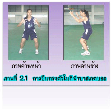 ทักษะเบื้องต้นของกีฬาบาสเกตบอลมีความจำเป็นและสำคัญอย่างยิ่ง สำหรับผู้ฝึกหัดกีฬาบาสเกตบอลซึ่งต้อง อาศัย การทรงตัวและสามารถเคลื่อนที่ที่ดีและถูกต้อง ทั้งในท่ีเป็นฝ่ายรุกและฝ่ายรับไม่ว่าจะอยู่ในลักษณะใด เช่น การหมุนตัว การกระโดด การวิ่ง และการหยุด ซึ่งถ้าผู้เล่นมีการทรงตัวและสามารถเคลื่อนที่ที่ดีแล้วก็จะสามารถส่งหรือ รับลูกบาสเกตบอลจากผู้ร่วมทีมได้เป็นอย่างดี การทรงตัว (Balance Stance) ![]() กีฬาบาสเกตบอลเป็นกีฬาที่ต้องใช้การเคลื่อนที่อย่างรวดเร็ว อีกทั้งมีทักษะเบื้องต้นหลายอย่าง ได้แก่ การวิ่ง การถอยหลัง การกระโดด การหมุนตัว การเลี้ยงลูก การส่ง – รับ ลูกบาสเกตบอล เป็นต้น การเคลื่อนที่และการปฏิบัติทักษะนั้น การทรงตัวที่ดีเป็นสิ่งที่สำคัญเป็นอันดับแรก เพราะการทรงตัว เป็นรากฐานเบื้องต้นที่มีความสำคัญ อย่างยิ่งต่อการฝึกหัด การเล่นบาสเกตบอลซึ่งผู้ฝึกหัดทุกคนโดยเฉพาะผู้ฝึกหัดใหม่จะต้องฝึกให้เกิดความชำนาญ โดยเหตุที่การเล่นบาสเกตบอลมีการเคลื่อนที่ด้วยเท้าทั้งสองข้างตลอดเวลา ทั้งขณะที่เป็นฝ่ายรุกและฝ่ายป้องกัน ทั้งใน ขณะที่ครอบครองลูกบอลอยู่ในมือและขณะมือเปล่า การเคลื่อนที่ดังกล่าวมักจะต้องทำด้วยความรวดเร็ว ว่องไว และถูกต้องตามเทคนิค ดังนั้นถ้าการทรงตัวไม่ดีย่อมเป็นอุปสรรคสำคัญต่อประสิทธิภาพการเคลื่อนที่ จากเหตุผล ดังกล่าว แล้วท่าของการทรงตัวและจังหวะการใช้เท้า (Footwork) และการถ่ายน้ำหนักตัว (Center of Gravity) จึงเป็นเรื่องสำคัญที่ต้องศึกษาและฝึกหัดให้ชำนาญ หลักสำคัญเกี่ยวกับการทรงตัวไว้ดังนี้ 1. ยืนแยกเท้าห่างกันประมาณช่วงไหล่เป็นลักษณะที่ดีที่สุด 2. ให้น้ำหนักตัวเฉลี่ยที่เท้าทั้งสองข้าง ค่อนไปทางปลายเท้า 3. เข่างอและโน้มตัวไปข้างหน้าเล็กน้อย 4. หน้ามองตรง 5. แขนกางออกเล็กน้อย 6. ยืนในลักษณะกล้ามเนื้อผ่อนคลาย ในบางครั้งการยืนทรงตัวอาจใช้เท้าใดเท้าหนึ่งอยู่หน้าก็ได้ ซึ่งเป็นท่าการทรงตัวในการยืนป้องกัน แต่เท้าทั้งสอง จะต้องอยู่ในลักษณะเตรียมพร้อมเพื่อจะเคลื่อนที่ต่อไป ![]() การเคลื่อนที่แบบสไลด์ (Slide) ![]() ![]() การเล่นกีฬาบาสเกตบอลมีการเคลื่อนไหวและเคลื่อนที่ได้หลายอย่าง เช่น การเดินไปข้างหน้า การวิ่ง การถอยหลัง ไปข้างๆ และการเคลื่อนที่แบบสไลด์ ซึ่งมักจะใช้มากเพราะเป็นการเคลื่อนที่ที่มีประสิทธิภาพมาก ซึ่งสามารถสไลด์ เข้าหาคู่ ติดตามคู่ และสามารถเคลื่อนเข้าไปปัดลูกบอลได้ การเคลื่อนที่แบบสไลด์สามารถเคลื่อนได้ หลายทิศทาง ดังนี้ 1. การเคลื่อนที่ไปด้างข้าง (Side Step) มีขั้นตอนดังนี้ 1.1 จากท่าการยืนทร
