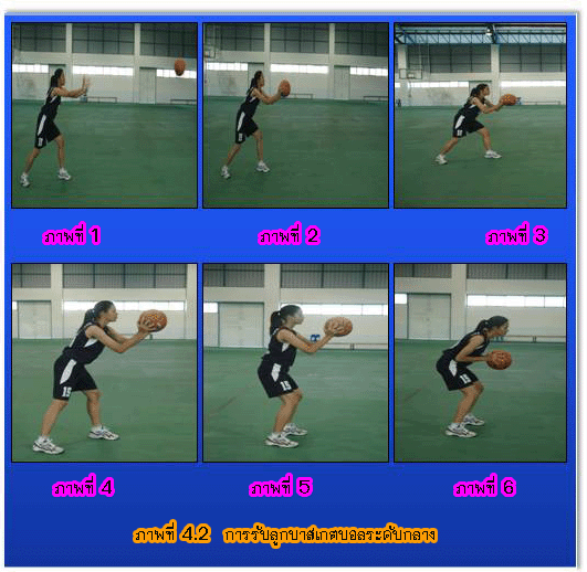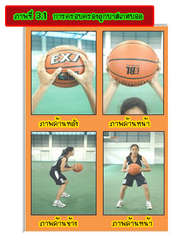 ครอบครองหรือการถือลูกบาสเกตบอลที่ดีควรถืออยู่ในระดับอก และเพื่อให้ผู้ฝึกได้สัมผัสลูกอย่างมีประสิทธิภาพ ควรสร้างความคุ้นเคยกับลูกบาสเกตบอล ด้วยกิจกรรมและแบบฝึกต่างๆ ทักษะการส่ง-รับเป็นทักษะพื้นฐานสำคัญที่ช่วยให้การเล่นกีฬาบาสเกตบอล เป็นไปได้อย่างมีประสิทธิภาพถ้าผู้เล่น สามารถครอบครอง ลูกบาสเกตบอลได้นานกว่าฝ่ายตรงข้าม มีการส่ง-รับ ที่รวดเร็ว แม่นยำ ถูกทิศทาง ย่อมเป็นการ ได้เปรียบ ในการเล่น และการทำประตู ![]() ทักษะการเลี้ยงลูกบาสเกตบอล ![]() เป็นทักษะพื้นฐานสำคัญที่ช่วยให้การเล่นกีฬาบาสเกตบอลเป็นไปได้อย่างมีประสิทธิภาพ ถ้าผู้เล่นสามารถครองลูกบาสเกตบอลได้นานกว่าฝ่ายตรงข้ามมีการเลี้ยงลูกบาสเกตบอลได้อย่างรวดเร็วย่อมเป็นการได้เปรียบใน การเล่น และการทำประตู ![]() การครอบครองลูกบาสเกตบอล (Ball Control) ![]() การครอบครองลูกบาสเกตบอล หมายถึง การถือ การรับ การส่ง และการเลี้ยงลูกบอล ถือเป็นทักษะพื้นฐานที่สำคัญ ประการหนึ่งในการเล่นบาสเกตบอล เพราะตลอดเวลาของการเล่นผู้เล่นทุกคนจะต้องพยายามครอบครองลูกบอล เพื่อให้เป็นประโยชน์แก่ฝ่ายตน ฉะนั้นถ้าผู้เล่นมีทักษะส่วนบุคคลในการครอบครองลูกดี จะทำให้การเล่นทีม อันเป็นผลสืบเนื่องจาก ทักษะส่วนบุคคลดีไปด้วย และการที่ได้เป็นฝ่ายครอบครองลูกบอลนั้น จะเป็นวิธีการป้องกันฝ่ายตรง ข้ามในการทำประตู ที่ดีที่สุด ย่อมได้เปรียบในการเล่นและสามารถเอาชนะฝ่ายตรงข้ามได้ง่าย การถือลูกบอล (Ball Handling) ![]() การถือลูกบอล คือ การใช้มือทั้งสองจับลูกบอลไว้ ให้นิ้วกางออก นิ้วหัวแม่มือทั้งสองอยู่หลังลูก ส่วนนิ้วอื่นๆ อยู่ทาง ด้านข้างของลูก ให้ลูกบอลอยู่ที่โคนนิ้วใช้ปลายนิ้วบังคับลูกและให้อยู่ที่ระดับอก เพราะเป็นตำแหน่งที่สามารถจะส่ง เลี้ยง ลูกบอล หรือขึ้นยิงประตูได้ดี และเป็นตำแหน่งที่เหมาะสมในการป้องกันลูกบอลจากการถูกฝ่ายตรงข้ามแย่งลูกบอลอีกด้วย ฉะนั้น การครอบครองลูกบอลถือเป็นรากฐานสำคัญอย่างหนึ่งในการเล่นบาสเกตบอล ผู้สอนควรให้ผู้เรียน ได้ฝึก ปฏิบัติในการครอบครองลูกบอลให้ชำนาญ การครอบครองสามารถแบ่งได้ ดังนี้ 1. การครอบครองบอลขณะอยู่กับที่ คือ กางนิ้วมือออกให้นิ้วหัวแม่มือทั้งสองข้างอยู่ด้านหลังลูกบอลค่อนไปทาง ด้านบนเล็กน้อย และให้สัมผัสไปตามพื้นผิวของลูก กางข้อศอกเล็กน้อยใช้ปลายนิ้วบังคับลูกบอลอย่าใช้อุ้งมือจับลูก และให้ลูกบอลอยู่ระดับอกเพราะสามารถส่งหรือเลี้ยงลูกบอลได้ดี และที่สำคัญเป็นตำแหน่งที่สามารถป้องกันลูกบอล จากการถูกฝ่ายตรงข้ามแย่ง 2. การครอบครองบอ