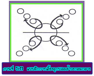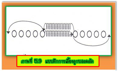 3. การเลี้ยงหมุนตัวหลบหลีก (Spin Dribbling) ผู้หลบหลีกเลี้ยงลูกบอลด้วยมือใดมือหนึ่ง เมื่อคู่ต่อสู้ มาทำการป้องกันอยู่ด้านหน้า ให้หันไหล่ด้านที่ไม่มีลูกบอลหันเข้าหาคู่ต่อสู้ในลักษณะหมุนตัว โดยก้าวเท้าไป ข้างหน้าหันหลังให้คู่ต่อสู้และหมุนตัวหลบหลีก ไขว้ขาด้านที่จะเคลื่อนที่ไปพร้อมกดไหล่เพื่อกำบังลูกบอลไว้ ![]() การเลี้ยงลูกบาสเกตบอลทั้งลูกบอลสูงและต่ำ ทักษะทั้งสองนี้บางสถานการณ์มีความจำเป็นต้องใช้เป็น อย่างมาก เพราะฉะนั้นเพื่อให้การเลี้ยงลูกบอลทั้งสองแบบสามารถปฏิบัติได้ดีขึ้นจึงมีข้อพึงปฏิบัติในการเลี้ยง ลูกบาสเกตบอลดังนี้ 1. ต้องฝึกเลี้ยงลูกบอลให้ได้ทั้งซ้ายและ ขวา 2. สามารถเลี้ยงเคลื่อนที่ไปทุกทิศทาง หมุนตัว และหยุดได้อย่างรวดเร็วทุกโอกาส 3. ถ้ามีผู้ป้องกันเข้ามาประชิดตัว การเลี้ยงลูกบาสเกตบอลต้องต่ำลงและใช้ลำตัวเข้ากำบังไว้เสมอ 4. อย่าก้มดูลูกบาสเกตบอลในขณะเลี้ยงและต้องพิจารณาว่าควรเลี้ยงเมื่อใด เพราะการเลี้ยงลูกมากเกินไป จะทำให้เกมช้าและพลาดโอกาสอันดีในการทำประตู การเลี้ยงลูกบาสเกตบอลทั้งลูกบอลสูงและต่ำจะสามารถเลี้ยงได้ตามกติกา คือ ทำการเลี้ยงแล้วเมื่อ สิ้นสุด การเลี้ยงจะทำการเลี้ยงอีกไม่ได้ ถือเป็นการทำผิดระเบียบเรื่องการเลี้ยงลูกบอลสองครั้งการเลี้ยงทำได้โดยวิธีกดลูกบอลลงสู่พื้น โยนลูกบอล กลิ้งลูกบอลและสิ้นสุด การเลี้ยงด้วยการจับลูกบอล ถูกลูกบอลสองมือพร้อมกัน พักลูก บอลบนมือหรือลำตัว ผู้สอนควรแนะนำให้ผู้เรียนได้เลี้ยงลูกบอลได้ถูกต้องโดยไม่ผิดกติกาและให้เกิด ความชำนาญทั้งมือขวาและมือซ้าย การเลี้ยงได้ชำนาญทั้งสองมือมีผลทำให้เพิ่มความสามารถ ในการเลี้ยง ของผู้เรียน ทั้งยังสามารถใช้กลวิธีการเลี้ยงเพื่อครอบครองลูกบอลหรือหลบหลีกคู่ต่อสู้ได้ เป็นการสร้างความ ภาคภูมิใจ และ ได้แสดงออก ถึงไหวพริบ และความสามารถของการเล่นบาสเกตบอลได้อย่างแท้จริง ![]() แบบฝึกการเลี้ยงลูกบาสเกตบอล![]() แบบฝึกที่ 1 การเลี้ยงลูกบอลผลัด วิธีปฏิบัติ ให้ผู้เรียนเข้าแถวตอนสองแถวหันหน้าเข้าหากัน ห่างกันประมาณ 10 เมตร เริ่มฝึกโดยให้ผู้เล่น หัวแถวเลี้ยงลูกบอลมาส่งให้คนหัวแถวฝั่งตรงข้าม แล้ววิ่งไปต่อท้ายแถวตรงข้าม ผลัดกันเช่นนี้ ไปเรื่อยๆ ![]() แบบฝึกที่ 2 การเลี้ยงลูกบอลเลี้ยวซิกแซก วิธีปฏิบัติ ให้ผู้เรียนเข้าแถวตอนแต่ละคนห่างกันประมาณ 1 เมตร เริ่มเล่นให้ผู้เรียนท้ายแถว เลี้ยงลูกบอล หลบหลีกไปมา แล้วอ้อมกลับมายังตำแหน่งเดิมของตัวเองส่งลูกบอลให้คนต่อไป ฝึกต่อ ให้ฝึกเลี้ยงลูกบอลต่ำสลับมือ ![]() แบ