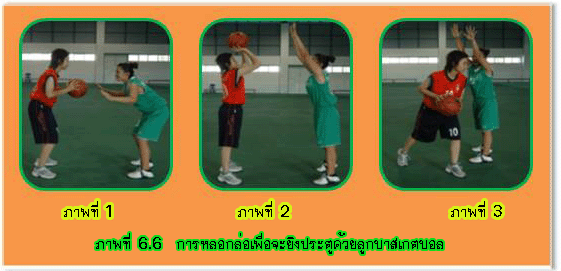 การเล่นกีฬาบาสเกตบอลนั้นประกอบด้วยฝ่ายรุกและฝ่ายรับการทำให้ฝ่ายตรงข้าม หลงทิศทางจากทิศทาง ที่เราตั้งใจจะไปเพื่อหลบหลีกการป้องกันได้สำเร็จ ถือเป็นการหลอกล่อ คู่ต่อสู้ ซึ่งถือเป็นการเพิ่มประสิทธิภาพ ในการเล่นกีฬาบาสเกตบอลด้วย การยิงประตูเป็นหัวใจสำคัญในการเล่นบาสเกตบอล ผลแพ้หรือชนะอยู่ที่ทักษะการยิงประตูของทีม ซึ่ง อาจจะได้จากการยิงประตูของผู้เล่นในระยะหรือมุมต่างๆ หรืออาจได้จากการยิงประตููนั้นต้องประกอบด้วย ลักษณะการยิงที่ถูกต้องและชำนาญ ซึ่งมีอยู่หลายแบบด้วยกัน ฉะนั้นผู้เล่นควรทำการฝึกฝนในทักษะ การยิง ประตูบ่อยๆ เพื่อให้เกิดความแม่นยำ ความหมายและความสำคัญในการหลอกล่อ สมรรถชัย น้อยศิริ (2535 : 119) ได้ให้ความหมายไว้ว่าการหลอกล่อ คือ การกระทำให้ คู่ต่อสู้หลงทิศทาง ที่เราตั้งใจไว้ เพื่อหลบหลีกการป้องกันของคู่ต่อสู้และเป็นการเพิ่มพูนประสิทธิภาพในการเล่นบาสเกตบอล อีกประการหนึ่งด้วย การหลอกล่อเพื่อหลบหลีกนี้อาจกระทำได้โดยใช้ลูกบอล สายตา ลำตัว ศีรษะ แขนหรือ เท้า ส่วนใดส่วนหนึ่งหรือทุกส่วนที่กล่าวมาแล้วทั้งหมดรวมกันหลอกล่อพร้อมกันเพื่อการหลอกล่อและหลบ หลีกก็ได้ และการหลอกล่อนี้อาจจะกระทำได้ในขณะที่ไม่มีลูกบอลอยู่ในครอบครองหรือมีลูกบอลอยู่ในครอบครองก็ได้ กรมพลศึกษา (2515 : 52) ได้ให้ความหมายไว้ว่า การหลอกล่อ ก็คือ การกระทำให้ผู้ป้องกันเข้าใจผิด หลงตาม ถลำตัวแล้วเปิดช่องว่างให้เข้ายิงประตูได้สะดวกขึ้น ฟอง เกิดแก้ว (2524 : 58) ได้ให้ความหมายไว้ว่า การหลอกล่อ หมายถึง ความสามารถในการลวงให้ฝ่าย ตรงข้ามเข้าใจผิด เกี่ยวกับทิศทางของการเคลื่อนไหวในการยิงประตูหรือในการส่งลูก โดยการใช้มือ เท้า ศีรษะ ไหล่ สายตา และลูกบอล ทั้งนี้เพื่อมิให้ฝ่ายป้องกันคุมตัวเราได้ ทำให้สามารถเคลื่อนไหวไปในทิศทางต่างๆ ได้สะดวกการหลอกล่อนี้อาจทำได้เมื่อมีลูกบอลหรือในขณะไม่มีลูกบอลอยู่ก็ได้ แต่ต้องรู้จักจังหวะและโอกาส ที่จะใช้ และไม่ควรที่จะทำซ้ำซากในวิธีการเดียวกัน การหลอกล่อเปรียบเสมือนยุทธวิธีที่สำคัญอย่างหนึ่งของการเล่นบาสเกตบอล เพราะเป็นการชิงไหว ชิงพริบ เพื่อให้คู่ต่อสู้หลงกล หลงทิศทาง หรือเกิดความสับสนผิดพลาด การหลอกล่ออาจใช้อวัยวะส่วนต่างๆ ของร่างกาย ได้แก่ ใบหน้า ศีรษะ แขน ขา และเท้า การหลอกล่อจะได้ผลดีถ้ามีความพร้อมด้าน สมรรถภาพทางกาย ปฏิภาณไหวพริบ การสั่งการของสมอง การประสานสัมพันธ์ของระบบประสาท และกล้ามเนื้อ จังหวะ ในการหลอกล่อจะต้องแสดงกิริยาท่าทางก่อนการเคลื่อนที่ขณะไม่มีลูก