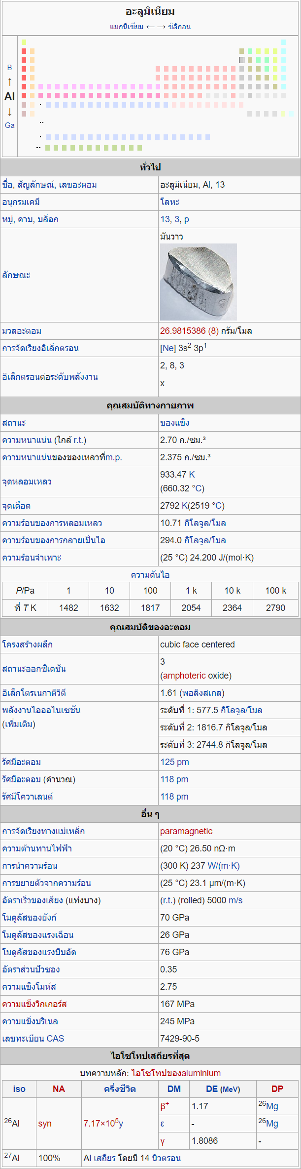 ขอบคุณข้อมูลเพิ่มเติม : https://th.wikipedia.org/wiki/อะลูมิเนียม