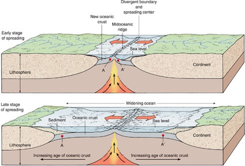 - หิน ที่อยู่ไกลจากรอยแยกจะมีอายุมาก