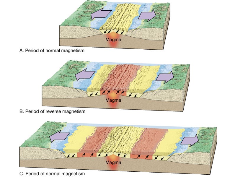 แร่แมกนีไทด์ ในหินบะซอลต์จะกลับทิศตามสนามแม่เหล็กโลกที่เปลี่ยนในช่วงเวลาต่าง