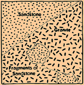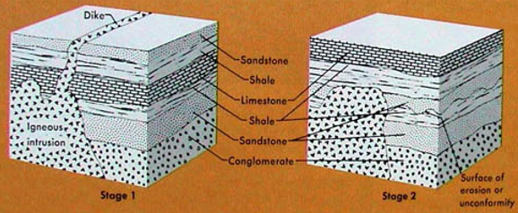อธิบายว่า หินที่ตัดผ่านเข้ามาในหินข้างเคียง จะมีอายุน้อยกว่าหินที่ถูกตัดเข้ามา