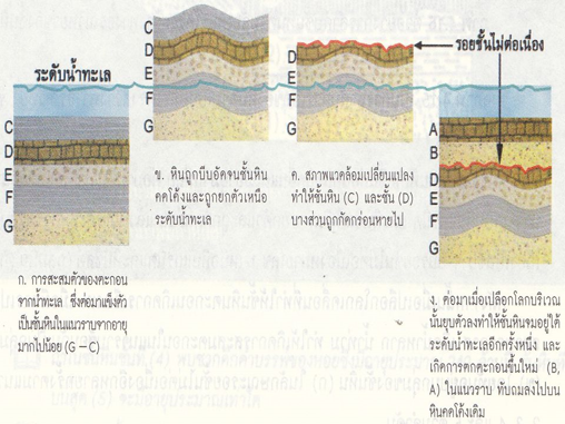 กระบวนการเกิดรอยชั้นไม่ต่อเนื่องของชั้นหิน