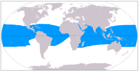 แผนที่แสดงการกระจายตัวของแนวปะการังทั่วโลก