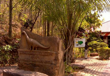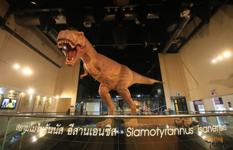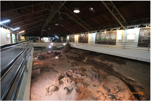 จุดเริ่มต้นมาจากการที่พระครูวิจิตรสหัสคุณ เจ้าอาวาสวัดสักกะวัน ภูกุ่มข้าว พบโครงกระดูกไดโนเสาร์เมื่อปี พ.ศ. 2537 นำมาซึ่งการสำรวจอย่างจริงจังของภาครัฐ ทำให้พบว่าพื้นที่ภูกุ่มข้าวเป็นแหล่งฟอสซิลไดโนเสาร์กินพืชที่ใหญ่ มีจำนวนมาก และสมบูรณ์ที่สุดของประเทศ จนเกิดการตั้งเป็นศูนย์ศึกษาวิจัยและพิพิธภัณฑ์ในเวลาต่อมา โดยส่วนพิพิธภัณฑ์เปิดให้บริการเต็มรูปแบบตั้งแต่ปี พ.ศ. 2550