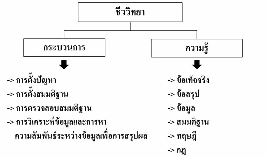ชีววิทยา มี 2 ส่วน คือ กระบวนการ (Process) และความรู้ (Knowledge)