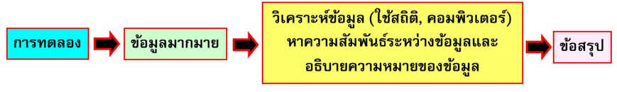 เป็นขั้นตอนที่นำข้อมูลต่างๆ ที่ได้จาการทดลองมาทำการวิเคราะห์หาความสัมพันธ์ระหว่างข้อมูล รวมทั้งการอธิบายความหมายของข้อมูลเพื่อนำไปสู่การสรุปผลในที่สุด ดังแผนภูมิ