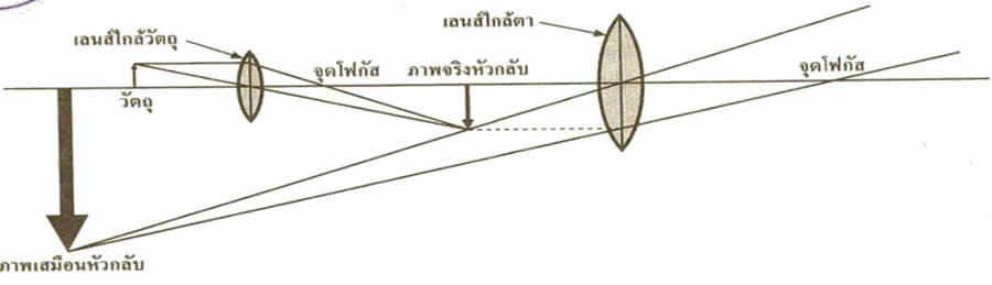 ภาพแสดงการเกิดภาพจากล้องจุลทรรศน์เลนส์ประกอบ