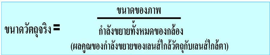 ถ้าใชกำลังขยายสูง พื้นที่ภาพที่เห็นจะน้อยแต่เป็นรายละเอียดมากและภาพจะสว่างน้อยลง