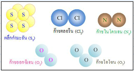 ภาพที่ 19 ตัวอย่างโมเลกุลของธาตุ