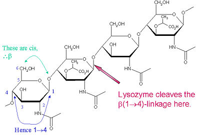 ไลโซไซมเป็นเอ็นไซม์ชนิดหนึ่งที่สามารถทำลายผนังเซลล์ของแบคทีเรียได้ ด้วยการกระตุ้นให้เกิดปฏิกิริยาไฮโดรไลสีส (hydrolysis) ที่พันธะเบตา 1-4 ระหว่างกรดเอ็น-อะซิติลมูรามิก (N-actylmuramic acid, NAM) กับเอ็น-อะซิติลกลูโคซามีน (N-acetyinglucosamine,NAG) ซึ่งอยู่ในชั้นเปปทิโดไกลแคน (peptidoglycan layer) ที่เป็นส่วนประกอบของผนังเซลล์แบคทีเรีย ทำให้ผนังเซลล์เกิดรอยแยก (clevage) ส่งผลให้เพิ่มการซึมผ่าน (permeability) บริเวณเยื่อหุ้มเซลล์ ทำให้มีการเปลี่ยนแปลงอิเล็กโทรไลท์ (electrolyte) และระดับความดันออสโมติก (osmotic change) ภายในเซลล์ นอกจากนี้ ยังมีรายงานว่า ไลโซไซม์สามารถเปลี่ยนแปลงเมแทบอลิซึมของกลูโคส ยับยั้งการสร้างกรดของเชื้อกลุ่มสเตร็ปโตคอคไค กระตุ้นให้แบคทีเรียเกิดการเกาะกลุ่ม (aggregation) ทำให้เกิดการชะล้างออกไปจากช่องปาก และยับยั้งการยึดเกาะ (adherenec) ของเชื้อสเตร็ปโตค็อคคัสมิวแทนส์กับผิวฟันได้