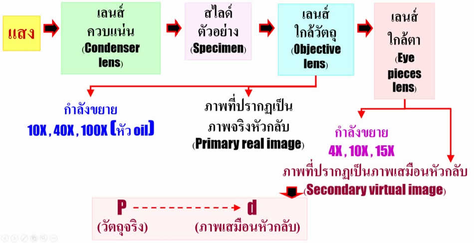 ภาพแสดงการเกิดภาพจากล้องจุลทรรศน์เลนส์ประกอบ