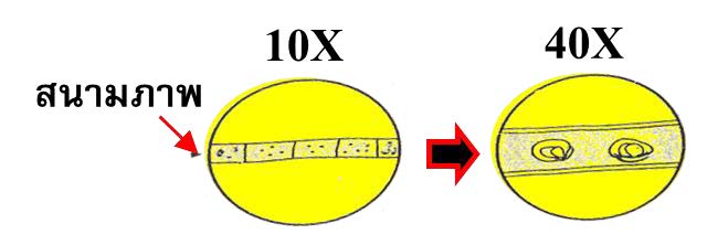 กำลังขยาย 10 x 100 เท่า เห็นเซลล์ทั้งหมด