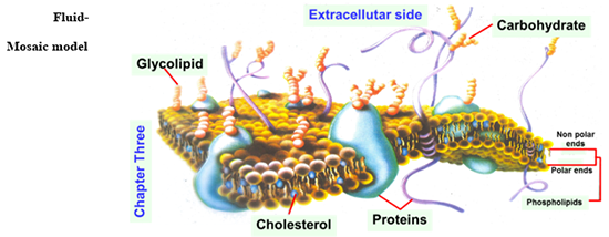 2. ฟลูอิด-โมเสค โมเดล (Fluid-mosaic model) ไขมันจะเคลื่อนที่ได้ และมีโปรตีนลักษณะเป็นก้อนแทรกอยู่ในระหว่างชั้นของไขมัน นักวิทยาศาสตร์ ยอมรับ ฟลูอิด-โมเสค โมเดล มากกว่า