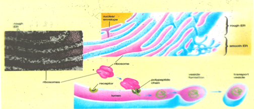 2. เกาะอยู่ที่ผิวนอกของ ER กลายเป็น RER ทำหน้าที่สร้างโปรตีนส่งไปใช้นอกเซลล์
