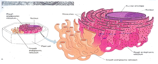 1. เอนโดพลาสมิก เรติคิวลัม (endoplasmic reticulum) มีลักษณะเป็นเยื่อบางๆ ชั้นเดียวพับซ้อนไปมา แบ่งเป็น 2 ชนิด คือ