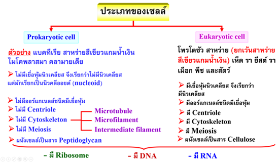 เซลล์จำแนกตามนิวเคลียสเป็น 2 ประเภท คือ