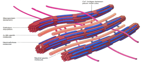 3. ในพืชจะมีพวกลิกนิน (Lignin) และเพคติน (Pectin) เป็นต้น โดยในเซล์พืชนั้นเซลลลูโลส เปรียบเสมือนโครงเหล็ก ส่วนลิกนินและเพคติน เปรียบเสมือนคอนกรีตล้อมรอบโครงเหล็ก