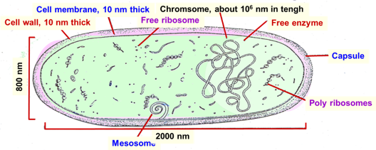 ภาพแสดงโครงสร้างเซลล์แบคทีเรีย (a) และ (b)ซึ่งเป็นโปรแคริโอติก เซลล์