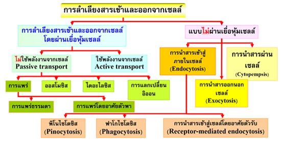 การลำเลียงสารเข้าและออกจากเซลล์ จำแนกออกเป็น 2 ประเภทใหญ่ๆ คือ
