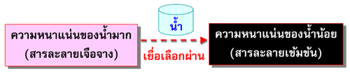 - ตัวอย่างเช่น การเคลื่อนที่ของสารละลายชนิดหนึ่งซึ่งอยู่ภายนอกเซลล์ โดยมีเยื่อหุ้มเซลล์กั้นขวางดังรูป