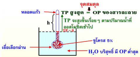 ที่จุดสมดุลของการแพร่พบว่าOP ของสารละลาย = TP สูงสุด