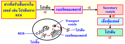 1. การลำเลียงสารออกนอกเซลล์ (Exocytosis) เช่น การหลั่ง ฮอร์โมน เอนไซม์ และ แอนติบอดี้
