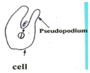 Pseudopodium อย่างน้อย 2 อันโอบรอบสาร
