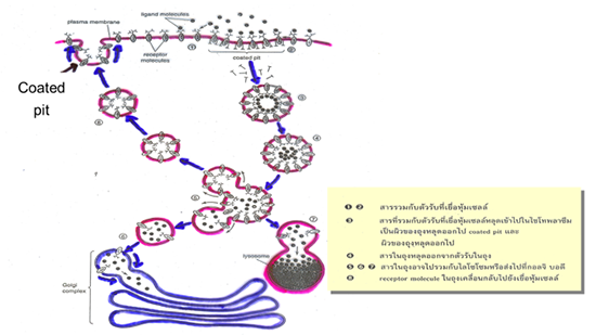 - การนำสารเข้าสู่เซลล์โดยอาศัยตัวรับ (Receptor-mediated endocytosis)