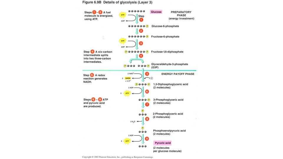 กระบวนการไกลโคลิซิส ประกอบด้วย 2 phase 1. energy investment phase 2. energy payoff phase
