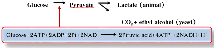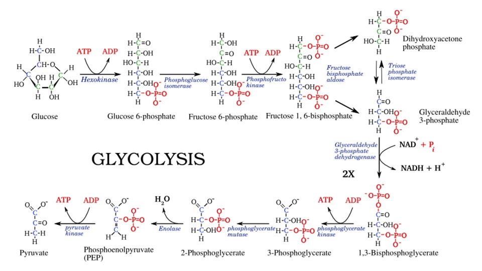 เป็นกระบวนการสลายกลูโคส 6 อะตอม (C6H12O6) ให้มาอยู่ในรูปกรดไพรูวิก (Pyruvic acid) (C3H4O3) เกิดขึ้นที่บริเวณ Cytosol แต่ละขั้นตอนมีเอนไซม์ต่างชนิดกันเป็นตัวเร่งปฏิกิริยา