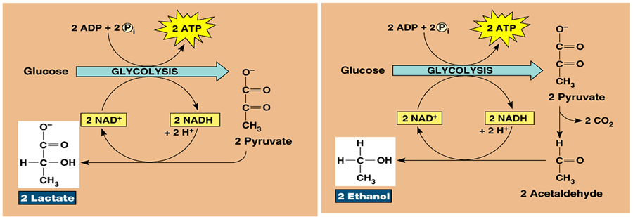 * NADH ที่ได้จาก fermentation จะถูกเปลี่ยนเป็น NAD+ เพื่อใช้ใน glycolysis