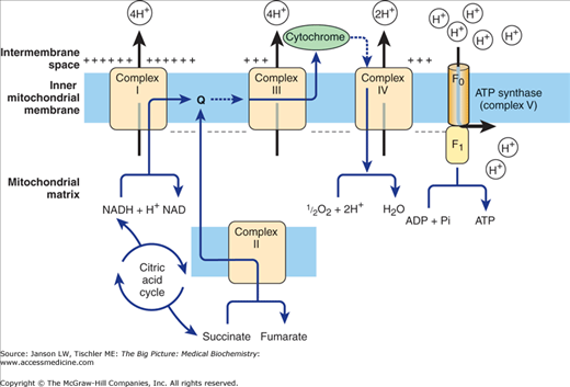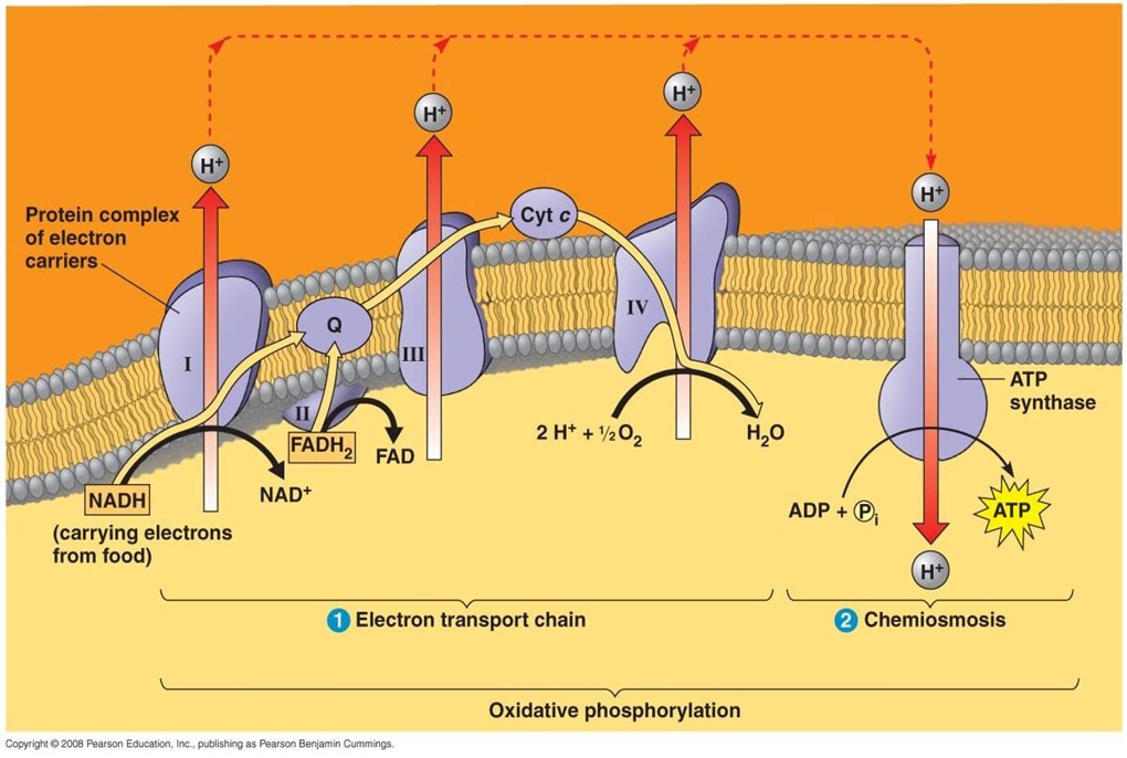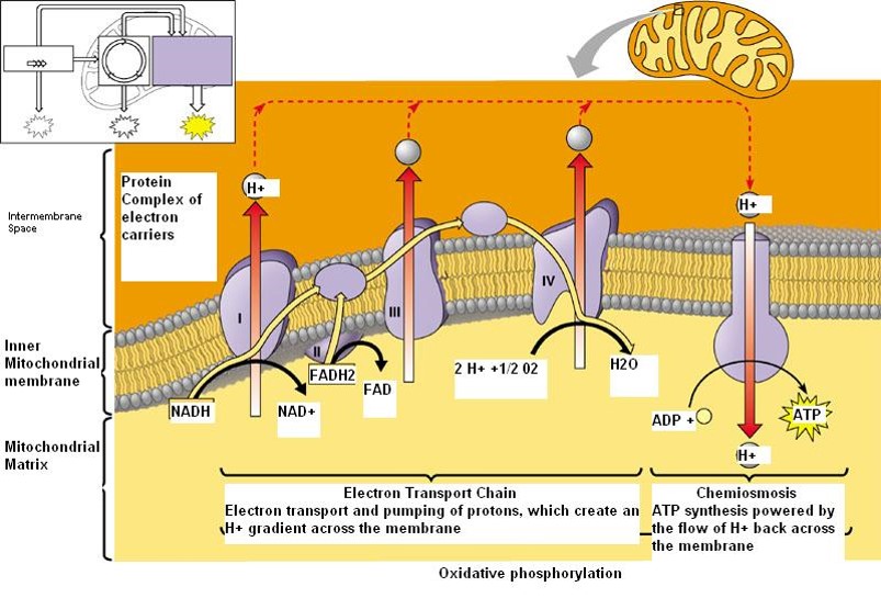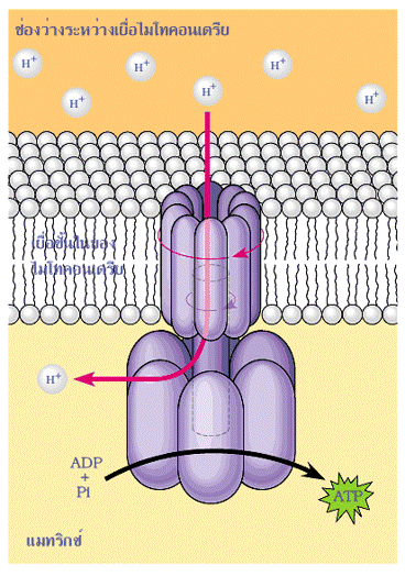 - พลังงานที่ปล่อยออกมาจะนำมาเป็นพลังงานในการขนย้าย H+ จาก matrix และส่งออกไปที่ intermembrane space