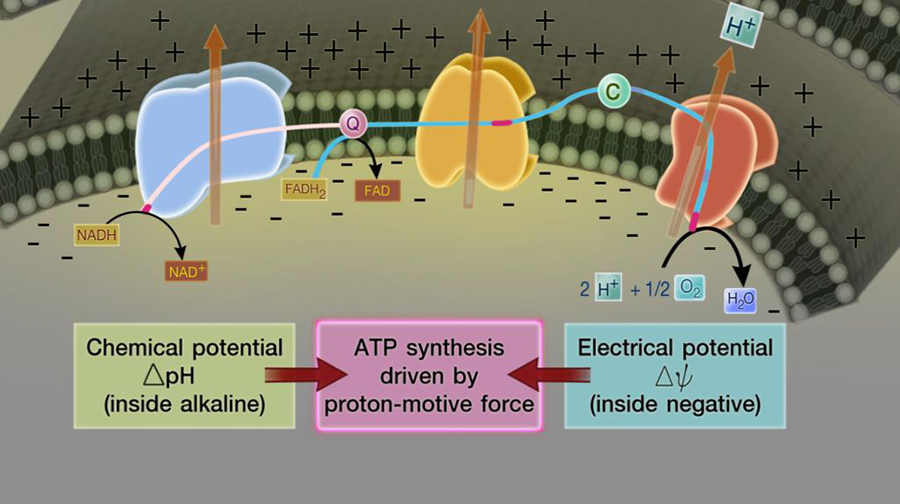 การผลักโปรตอนผ่านเยื่อหุ้มชั้นในของไมโทคอนเดรียต้องใช้พลังงาน เพราะเยื่อหุ้มชั้นในของไมโทคอนเดรียไม่ยอมให้โมเลกุลใดๆ แพร่ผ่านอย่างอิสระได้ แม้แต่โปรตอนซึ่งมีขนาดเล็ก