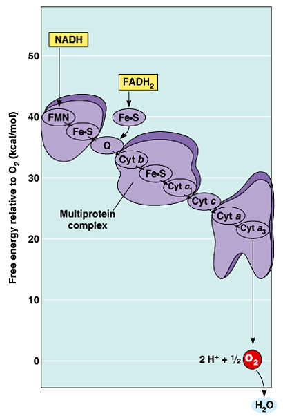FAD (flavin adenine dinucleotide) FAD 1 โมเลกุล รับ 2 โปรตอนและ 2 อิเล็กตรอน จะเปลี่ยนเป็น FADH2 ซึ่งมีสมบัติเป็นตัวให้อิเล็กตรอนเข้าสู่กระบวนการถ่ายทอดอิเล็กตรอน เพื่อนำพลังงานที่อยู่ใน FADH2 มาใช้ในการสร้างพลังงาน