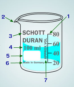 1. ขีดบอกปริมาตร วิธีการใช้งานบีกเกอร์ "ห้ามใช้บีกเกอร์ทุกขนาดทดลองปฏิกิริยาระหว่างสารโดยเด็ดขาด" ขอบคุณเนื้อหาเพิ่มเติม |