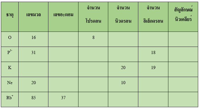 ตัวอย่างที่ 3 จงเขียนสัญลักษณ์นิวเคลียร์ของธาตุ A ที่มี 16 อิเล็กตรอน และมีนิวตรอน 16 เท่ากัน