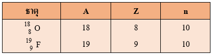 จะเห็นได้ว่าเฉพาะ A เท่านั้นที่เท่ากัน แต่ Z และ n ไม่เท่ากัน จึงเป็นไอโซบาร์