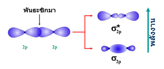 จากรูปแสดงการเกิดออร์บิทัลโมเลกุลิดจากการซ้อนเหลื่อมกันของออร์บิทัล-p