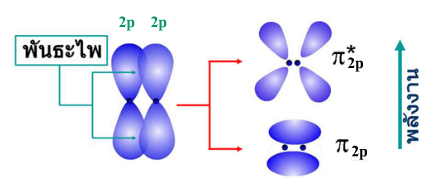 ข.ออร์บิทัล-p ทั้งสองเกิดการซ้อนเหลื่อมตามแนวข้างเกิดเป็นพันธะไพ (π-bond) "