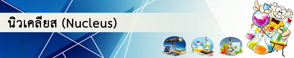 นิวเคลียส (Nucleus) นิวเคลียสประกอบด้วย โปรตอน (Proton) และ นิวตรอน (Neutron) อิเล็กตรอนมีประจุไฟฟ้าเป็นลบ โปรตอนมีประจุไฟฟ้าเป็นบวก นิวตรอนไม่มีประจุ อะตอมมีจำนวนโปรตอน เท่ากับจำนวนอิเล็กตรอน ทำให้ประจุรวมเป็นศูนย์ หรือเป็นกลางทางไฟฟ้าอิเล็กตรอนมีมวล 5.4858 x 10-4 U โปรตอนมีมวล 1.00727 U นิวตรอนมีมวล 1.00866 U อะตอมมีขนาดประมาณ 1 อังสตรอม หรือ 10-10 เมตร ขณะที่นิวเคลียสมีขนาด 1 - 10 เฟมโตเมตร หรือ 1-10 x 10-15 เมตร นิวเคลียส มีขนาดเล็กมาก เมื่อเทียบกับอะตอม แต่มวลเกือบทั้งหมดอยู่ที่นิวเคลียส พื้นที่ส่วนใหญ่ของอะตอม จึงเป็นที่ว่างที่มีอิเล็กตรอนเคลื่อนที่อยู่ภายใน องค์ประกอบของนิวเคลียส รัทเทอร์ฟอร์ดให้การสนับสนุนแนวคิดที่ว่านิวเคลียสของไฮโดรเจนเป็นองค์ประกอบของ นิวเคลียส ของธาตุต่างๆ โดยทดลองยิงอนุภาคแอลฟาชนนิวเคลียสของไนโตรเจน และพบว่ามี นิวเคลียสของ ออกซิเจนและไฮโดรเจนเกิดขึ้น ดังรูป 2 เขาจึงเสนอให้เรียกนิวเคลียสของไฮโดรเจน ว่า โปรตอน และจากการที่ธาตุกัมมันตรังสีบางธาตุมีการปล่อยอนุภาคบีตาหรืออิเล็กตรอนออกมา ทำ ให้นักวิทยาศาสตร์ บางคนคิดว่า อิเล็กตรอนก็อาจเป็นองค์ประกอบของนิวเคลียสของธาตุต่าง ๆ ได้ เช่นกัน ด้วยเหตุนี้จึงได้มี การสร้างสมมติฐานโปรตอน - อิเล็กตรอน