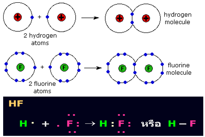 ตัวอย่าง การเกิดพันธะโคเวเลนต์ของไฮโดรเจนฟลูออไรด์