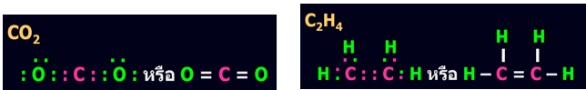 ตัวอย่าง การเขียนสูตรโครงสร้างของ O2, CO2, C2H4, N2 และ C2H2