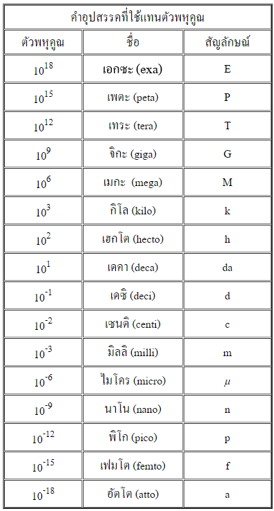 เมื่อค่าในหน่วยฐานหรือหน่วยอนุพัทธ์น้อยหรือมากเกินไปเราอาจเขียนค่านั้นอยู่ในรูปตัวเลขคูณด้วยตัวพหุคูณ (ตัวพหุคูณ คือ เลขสิบยกกำลังบวกหรือลบ) ได้ เช่น ระยะทาง 0.002 เมตร เขียนเป็น 2 x 10-3 เมตร หรือสามารถเขียนแทนด้วยคำอุปสรรค