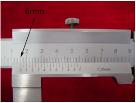 2. ค้นหาเครื่องหมายมิลลิเมตรในระดับคงที่ที่เป็นเพียงทางด้านซ้ายของ 0 เครื่องหมายบนสเกลเวอร์เนีย (6mm เมื่อคงที่คาลิปเปอร์)