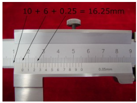 4. ค่าที่จะได้รับการอ่านที่ถูกต้องเป็นดังนี้ (10 + 6 + 0.25 = 16.25 มม. )