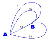 ถ้าวัตถุเคลื่อนที่ จาก A ไป B ตามเส้นทาง S1 จะได้ระยะทาง = S1, ระยะกระจัด = S3 ถ้าวัตถุเคลื่อนที่ จาก A ไป B ตามเส้นทาง S2 จะได้ระยะทาง = S2, ระยะกระจัด = S3 ถ้าวัตถุเคลื่อนที่ จาก A ไป B ตามเส้นทาง S3 จะได้ระยะทาง = S3, ระยะกระจัด = S3 ถ้าวัตถุเคลื่อนที่ จาก A ไป B ตามเส้นทาง S4 จะได้ระยะทาง = S4, ระยะกระจัด = S3 การกระจัดจึงมีค่าเท่ากับระยะทาง เมื่อวัตถุเคลื่อนที่เป็นเส้นตรง